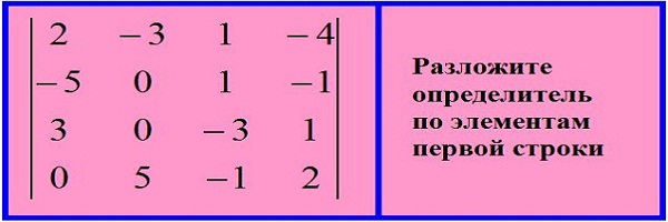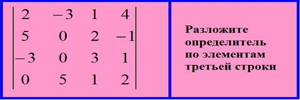 На рисунках даны определители четвертого порядка. Для каждого из них найдите соответствующее разложение.